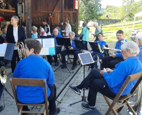 Wie schön ist es, bei wärmendem Sonnenschein an einem outdoor Gottesdienst zu spielen; die letzten 2 Mal in Gündisau hat es geregnet und es war kalt. Die ZO-Brass war eingeladen, auf dem Hof der Familie Stähli den Gottesdienst mit ihren wohlklingenden Tönen zu bereichern und die von Pfarrer Udo Müller und Sabine Müller ausgewählten Lieder zu begleiten.